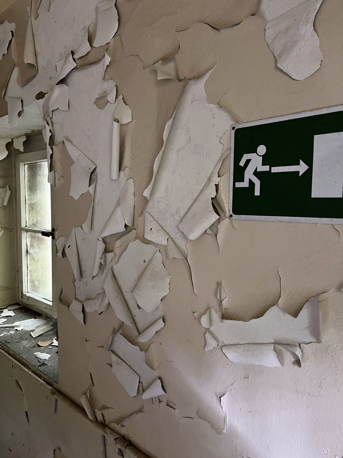 Über die alte Zufahrtsstraße der Muna gelangten wir sodann in den Bereich der an der B450 liegt und einigen noch als „Muna-Krankenhaus“ bekannt sein dürfte. Leider beginnt auch hier zunehmend der Verfall der Gebäude.