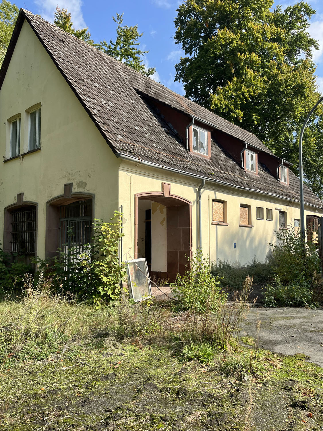 Anders sieht es im hinteren Bereich der Anlage aus. Dort wo einst die Produktionsstätte für Munition der Flugabwehrkanonen war. Die sogenannte MuNa, die eine wesentliche größere Fläche von 277 Hektar umfasste, ist dem Verfall preisgegeben. So wanderten wir über teils gänzlich zugewachsene Wege und Straßen zu Gebäuden und Hallen die von der Natur mehr und mehr zurückerobert werden.